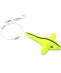 The Clarkspoon Bird Rig is an effective trolling rig. Our 5” chartreuse bird is rigged with 8’ of 30 lb. test mono and a size 00 chrome Clarkspoon. The fishing bird works as a top water attractant while the Clark spoon trails behind producing an irresistible flash gamefish can’t resist.