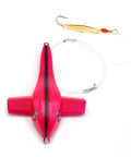 The Clarkspoon Bird Rig is an effective trolling rig. Our 5” pink bird is rigged with 8’ of 30 lb. test mono and a size 00 gold Clarkspoon. The fishing bird works as a top water attractant while the Clark spoon trails behind producing an irresistible flash gamefish can’t resist.
