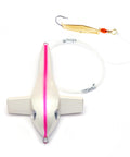 The Clarkspoon Bird Rig is an effective trolling rig. Our 5” white bird is rigged with 8’ of 30 lb. test mono and a size 00 gold Clarkspoon. The fishing bird works as a top water attractant while the Clark spoon trails behind producing an irresistible flash gamefish can’t resist.