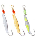 Three size 00 Clarkspoons in one convenient package. Kit features the original chrome and gold Clarkspoon and a chartreuse flashspoon, making sure you're ready for any water condition. The diamond shape lures achieve maximum light reflection. Our built-in swivel system eliminates line twist while trolling lure. Rigged with a colored bead for an additional fish attractant. Built with a strong stainless steel saltwater fishing hook for solid hook sets. Three spoons per pack.